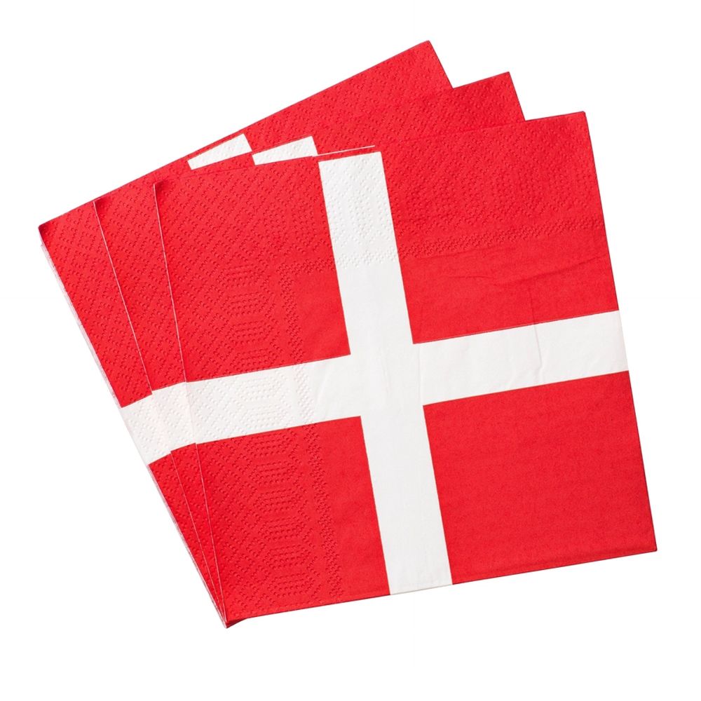 Disse tre-lags servietter prydet med det danske flag er perfekte til at fejre enhver dansk festlighed. Hver pakke indeholder 20 servietter, der måler 33 x 33 cm, ideelle til store sammenkomster og sportsbegivenheder.