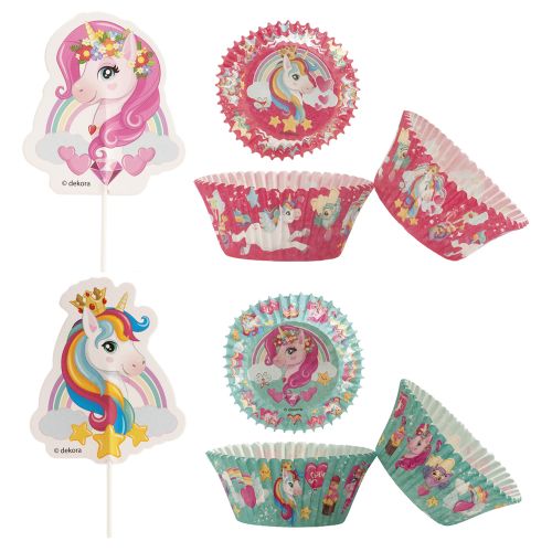 Super sødt enhjørninge muffins kit med muffinsforme og enhjørninge papfigurere til at sætte i dine cupcakes.