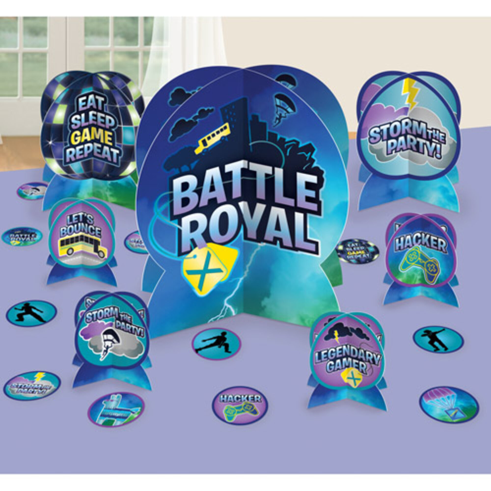 Bordekorationer med gamer / Fortnite tema. Brug dem til at pynte op til fødselsdagen med Fortnite tema. Så hvis dit barn elsker at spille Fortnite, og skal holde et brag af en fødselsdag, vil disse Fortnite dekorationer blive et sikkert hit!