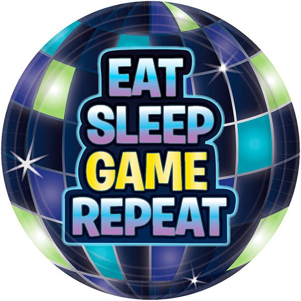 På tallerkerne står der: Eat, sleep, game, repeat.