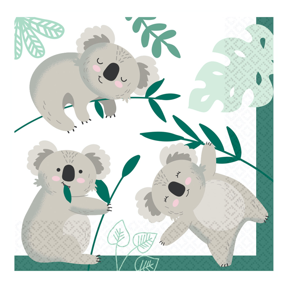 Søde servietter med koalaer på. Brug dem til fødselsdagsfesten for ham eller hende, der elsker dyr og natur.
