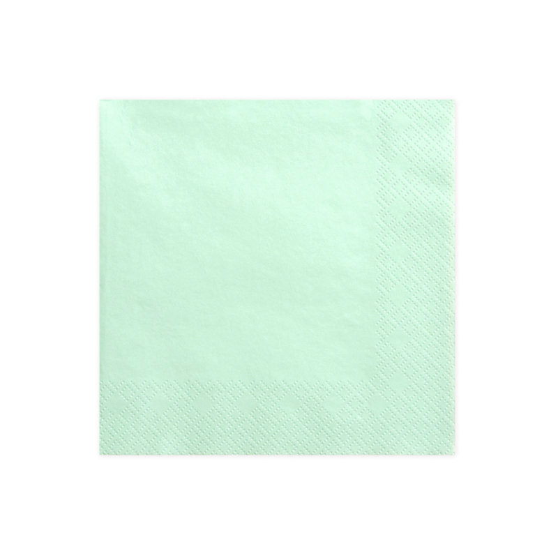 Klassiske servietter i mintgrøn. Brug servietterne til den næste fødselsdag, til barnedåben, konfirmation eller til hverdag. Du kan evt. kaste dig ud i at folde servietterne på en kreativ måde, så alle gæsterne bliver imponerede.