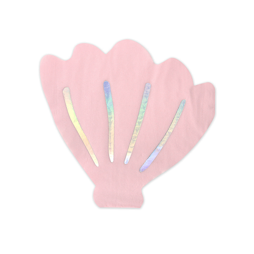 Flotte rosa servietter formet som muslineskaller. Brug servietterne til fødselsdagen med havfrue tema eller havtema. Servietterne vil med sikkerhed blive et hit hos fødselsdagsbarnet og gæsterne.