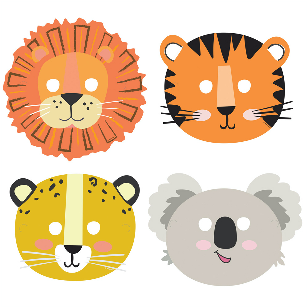 Sjove masker med safari motiver. Brug maskerne til fødselsdagsfesten med safari tema. De kan være super sjove, hvis klassekammeraterne eller familien skal have taget sjove billeder til festen.